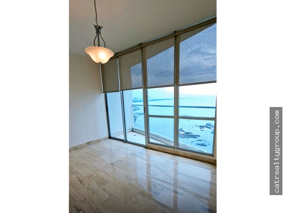 Punta Pacifica, apartamento con hermosa vista panoramica al mar consta de cocina equipada con area de desayunador, lavanderia, cuarto y baño de servicio, sala comedor, den, balcon, baño de visita, 3 recamaras cada una con su baño, 2 estacoinamientos. El apartamento incluy linea blanca, aires, persianas y lamparas, listo para ocupar.