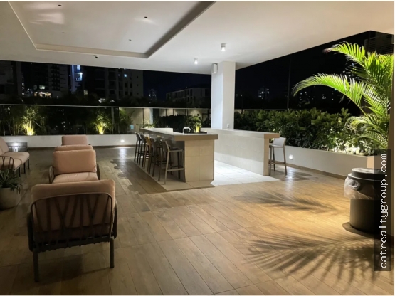 La unidad cuenta con 3 recámaras cada una con su baño, moderna cocina, balcón con hermosa vista, sala comedor con Aires acondicionados, lámparas, Linea blanca completa con 2 refrigeradoras, lucese en todo el apartamento y cortinas instaladas, cuarto y baño de servicio, 2 estacionamientos y un depósito.