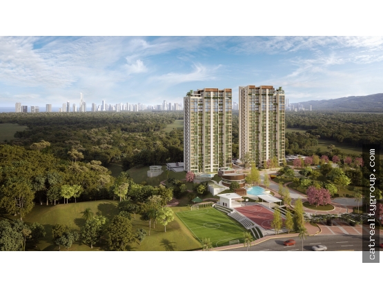 El complejo cuenta con outdoor e indoor gym, piscinas, áreas de eventos, huerto urbano, gacebo, parque de skate, parque infantil, yoga, meditación, tree house, petting zoo, dog park.