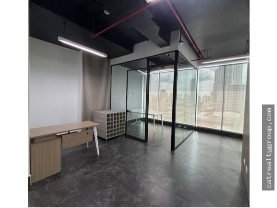 San Francisco ofiicna de 66m2 la mismo consta de recepcion, diviisiones en vidio puede ser oficina y/o sala de reuniones, baño, cocineta, depositio, incluye 2 estacionamientos. El PH ofrece elevador, estacionamiento de visita, la oficina cuenta con ventanales piso a techo con vistas panoramica. Incluye aire acondicionado, baño acabado cocineta incluida pisos de porcelanato, iluminacion. Lista para ocupuar